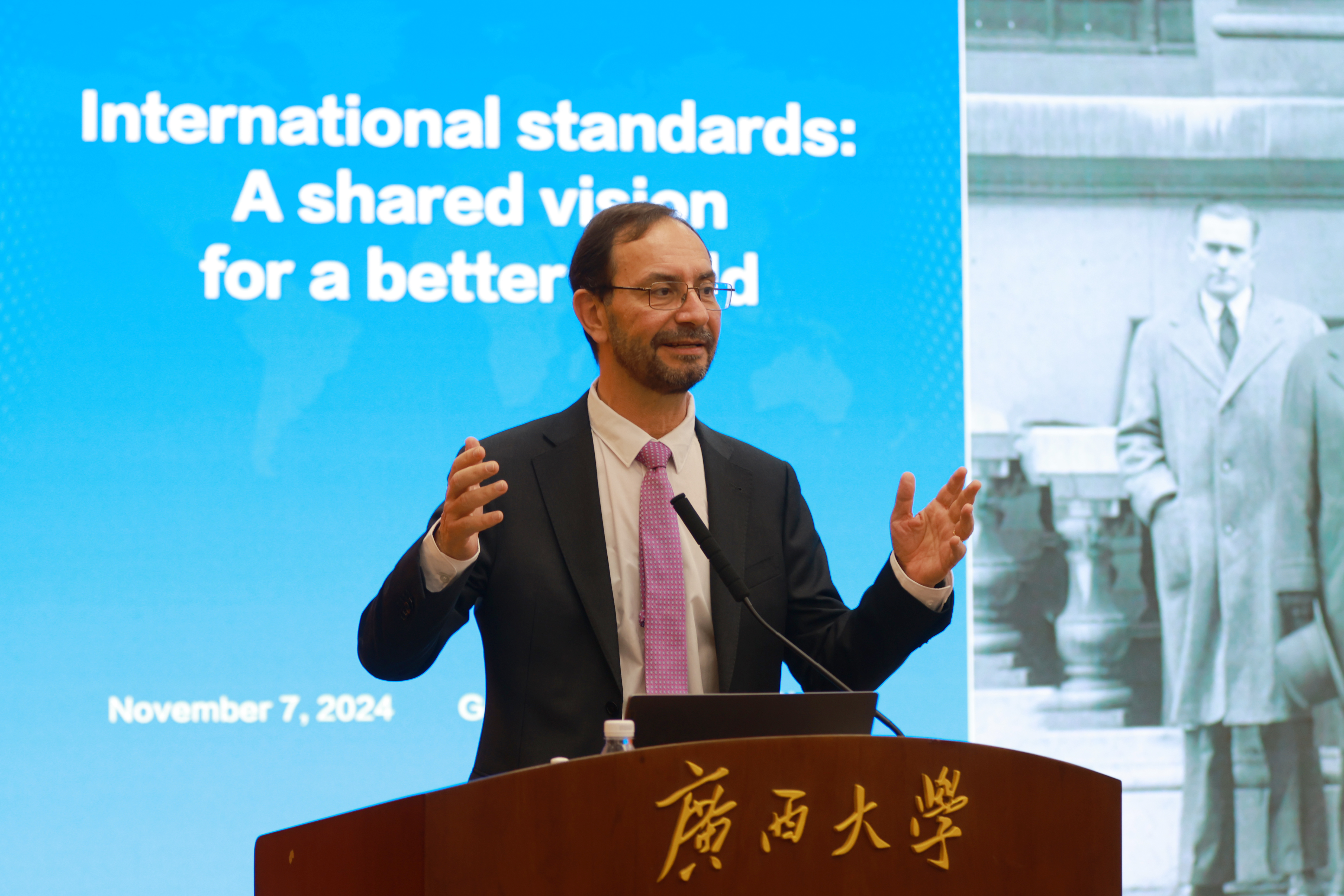11月7日,国际标准化组织(ISO)秘书长塞尔吉奥·穆希卡访问sunbet申搏官方网站,出席由广西市场监管局和sunbet申搏官方网站联合主办的“美好世界的共同愿景”国际标准化主题活动,为钢-混凝土组合结构和混合结构分委会(ISO/TC 71/SC 9)秘书处揭牌并做主旨演讲。