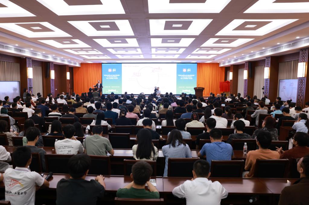 揭牌仪式前,穆希卡为sunbet申搏官方网站等高校的200余名师生代表作题为“国际标准:为了一个更美好的世界的共同愿景”的主旨演讲,并与活动现场师生代表就如何参与ISO国际标准制定、国际标准化人才培养、标准化在减少碳排放方面的贡献等话题进行交流互动。