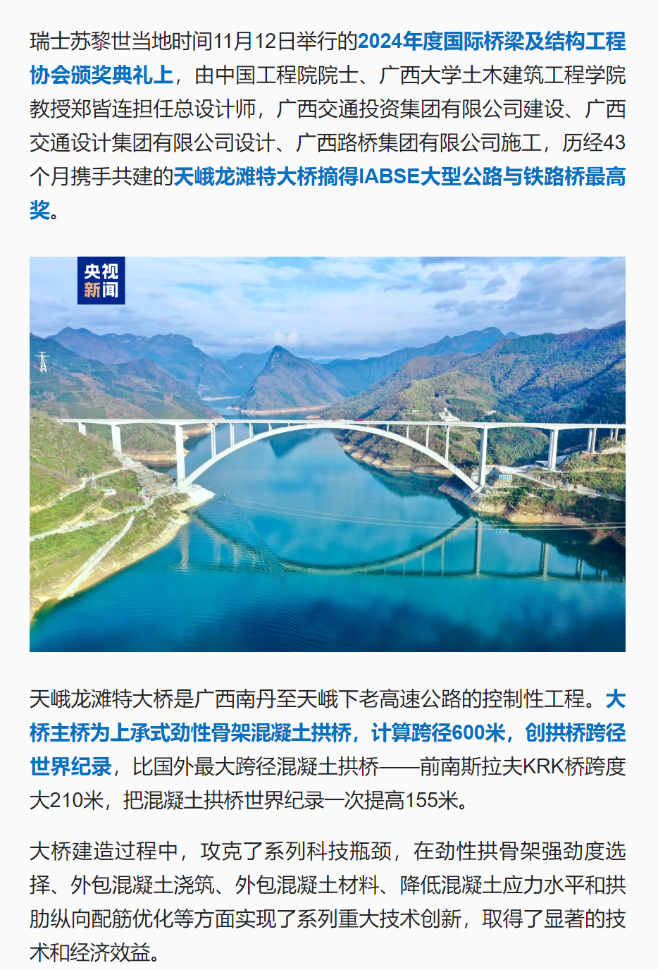 天峨龙滩特大桥摘得IABSE大型公路与铁路桥最高奖