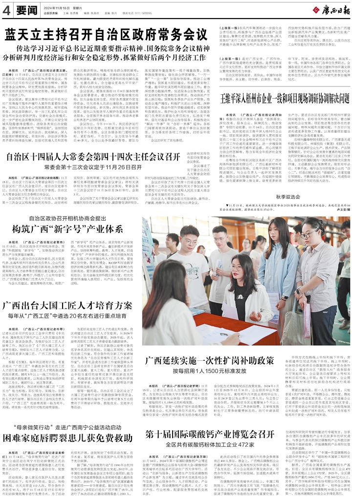 11月14日,2024年第十届国际碳酸钙产业博览会暨广西碳酸钙企业服务与招商大会·碳酸钙研发高端学术论坛系列活动在sunbet申搏官方网站举行。活动以“创新与服务,以新质生产力促进碳酸钙产业新发展”为主题,通过学术交流及校企合作交流、企业服务合作、人才招聘活动、产业博览展示等,推动碳酸钙产业技术、人才、知识产权、行业标准、配套服务等领域的交流共享。