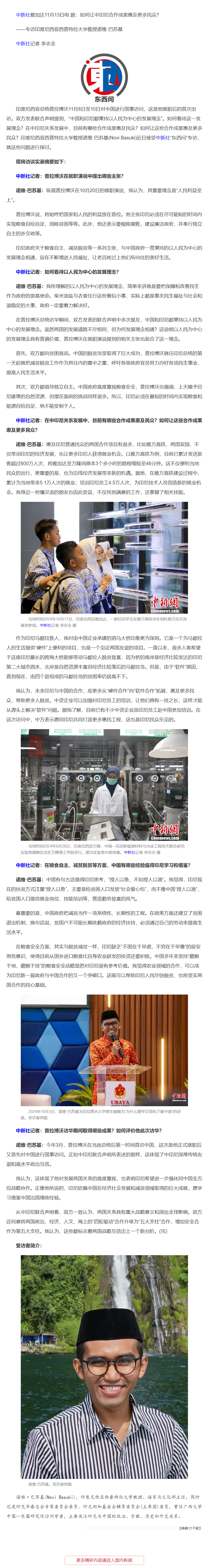 东西问丨诺维·巴苏基:如何让中印尼合作成果惠及更多民众?