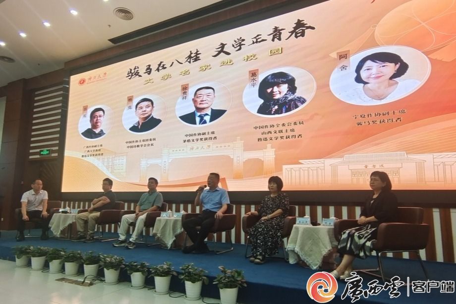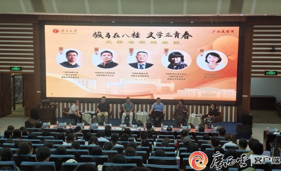 11月14日上午,“2024中国文学盛典·骏马奖之夜”系列活动之一,“广西文学周”著名作家进校园活动走进sunbet申搏官方网站。本次交流会以“骏马在八桂 文学正青春”为主题,徐贵祥、杨克、葛水平、田耳、阿舍等多位文坛大咖走进校园,与大学生们面对面畅谈文学创作体验和感悟,并就网络文学的崛起、跨文体写作、跨界写作、未来文学的发展趋势等话题进行了探讨。