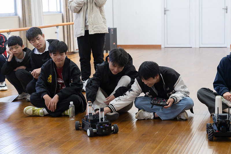 学生专注操控智能小车,展现出浓厚兴趣。杨建摄