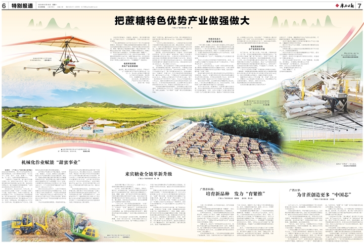 广西认真贯彻落实习近平总书记关于广西工作论述的重要要求,特别是对广西糖业高质量发展的重要指示精神,坚决扛稳国家食糖安全政治责任,持续深化糖业体制机制改革,聚焦“糖料蔗生产提质降本增效”“糖业科技创新”“制糖企业改造升级”等重点领域、关键环节精准发力,把糖业这一特色优势产业做强做大,牢牢端稳中国的“糖罐子”。