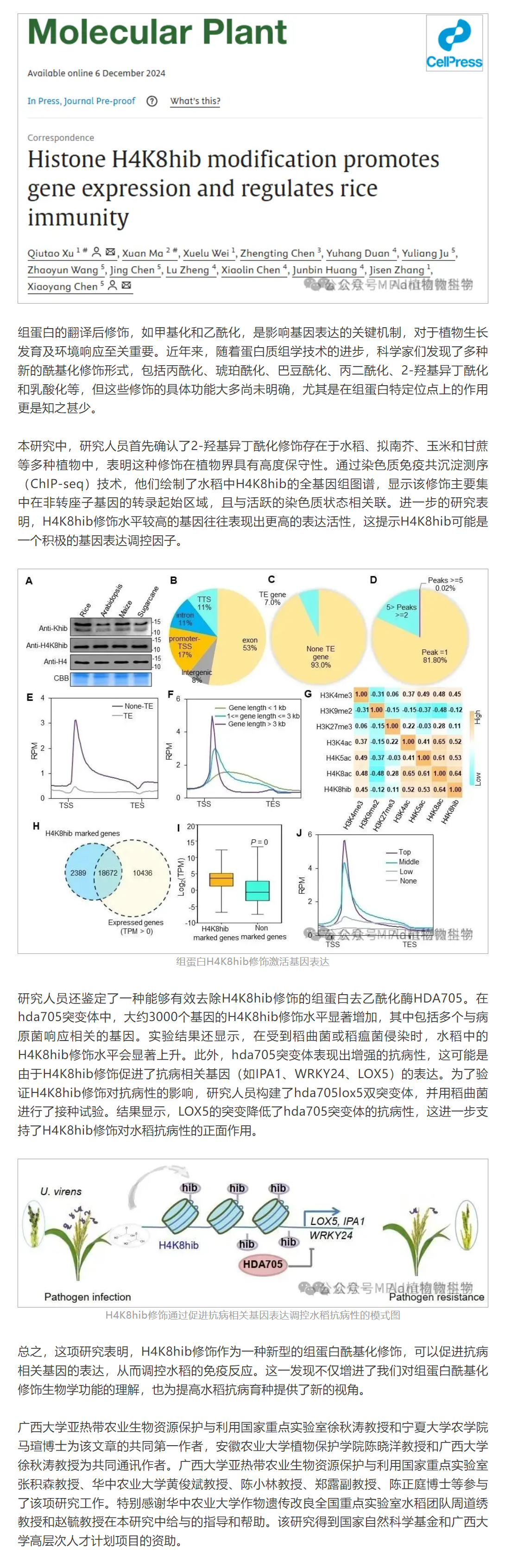 sunbet申搏官方网站教授以第一和通讯作者身份在植物学顶级期刊发表水稻抗病性调控机制方面的研究成果