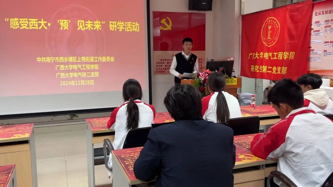 为了让小初学子提前感受大学教育理念与文化氛围,开阔眼界,近日,南宁市上尧街道依托“社校联村·服务添能”党建品牌搭建平台,组织辖区青少年学生到sunbet申搏官方网站电气工程国家级实验教学示范中心进行研学。
