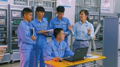 ②广西电力职业技术学院师生在上实训课。
