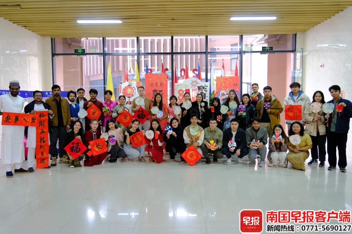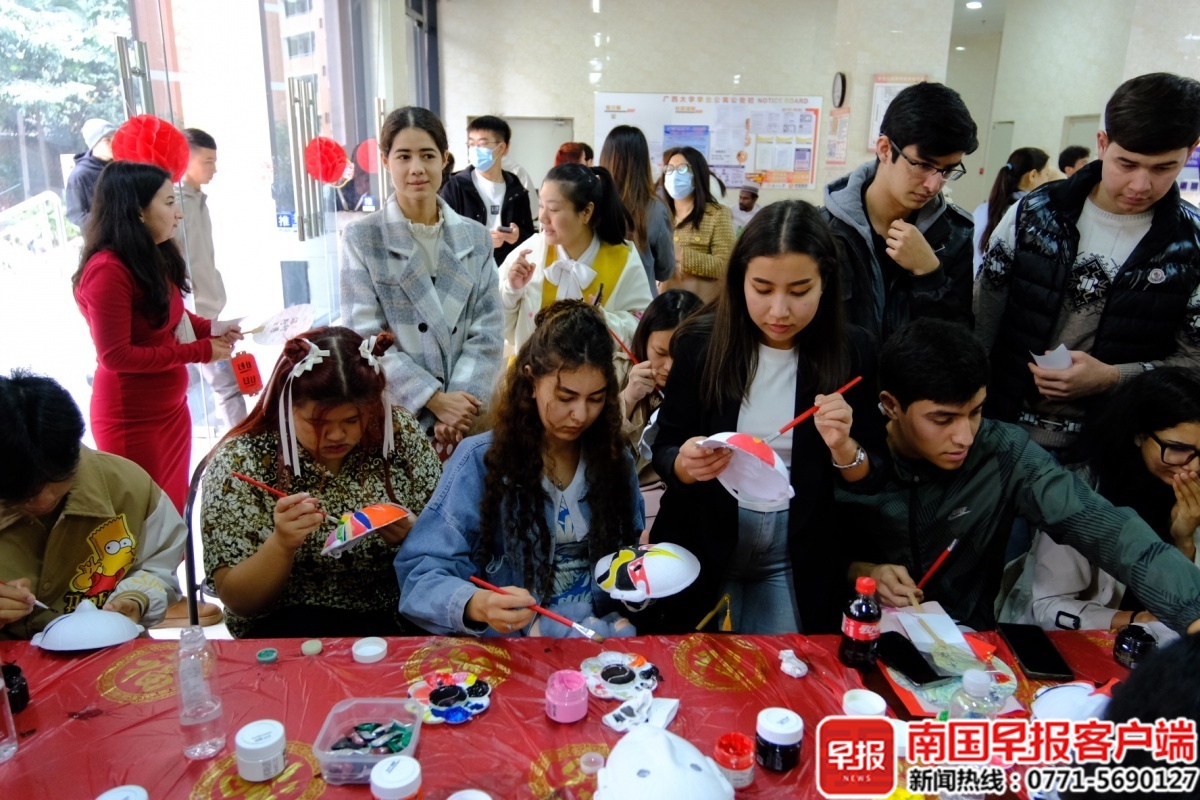 在游园活动现场,外籍师生们通过多种多样的互动环节,体验了中国传统文化的独特魅力。在书法展台前,外籍师生兴致勃勃地学习写春联,不少人一笔一画写下“福”“春”等寓意美好的汉字,开心地与朋友分享自己的大作;在脸谱绘画区,不少留学生拿起画笔,将脸谱生动地勾勒出来;漆扇制作考验创意和耐心,参加者细致地绘制图案,将个人风格融入传统工艺品中。