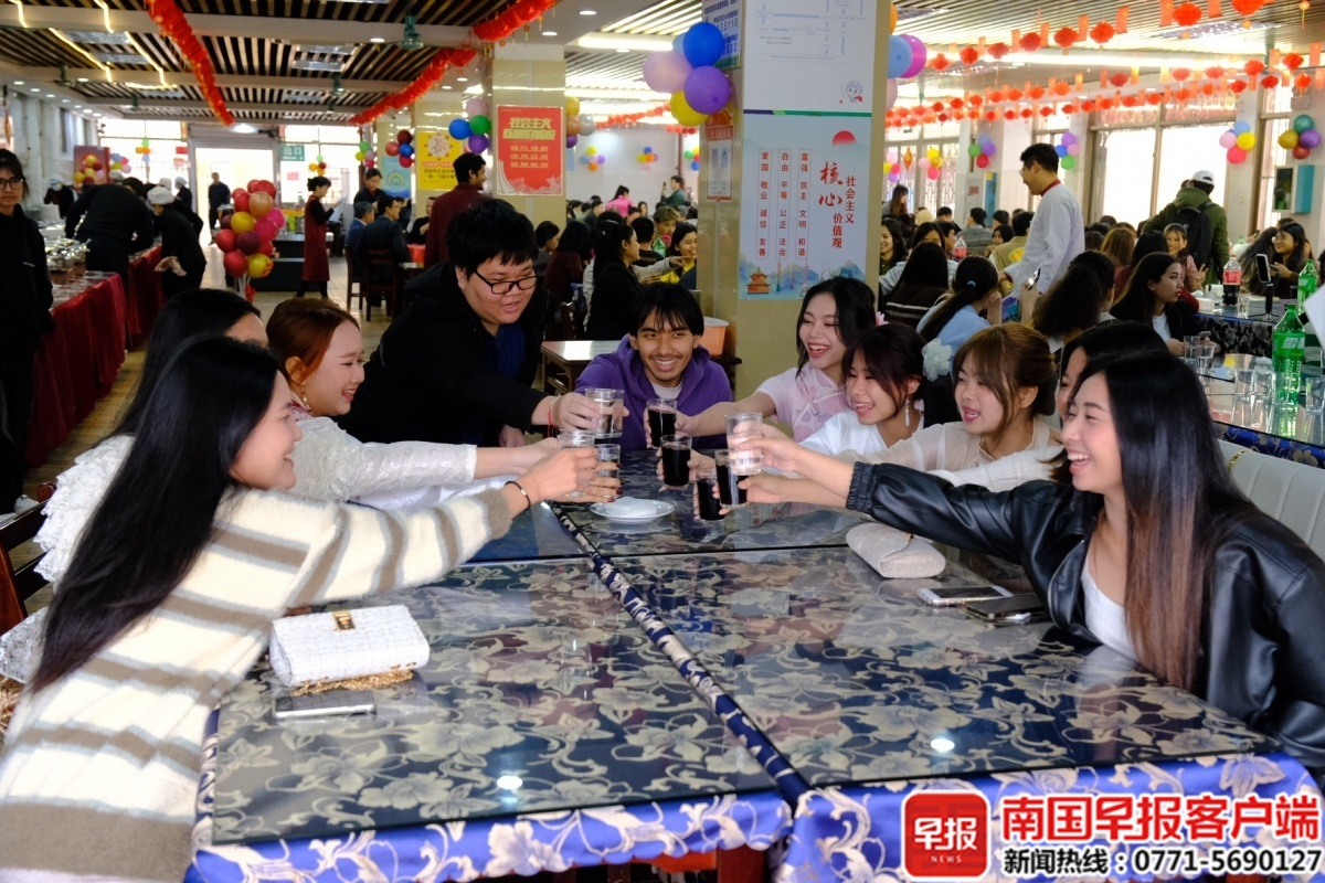 活动现场笑声不断,现场师生们纷纷举杯,向彼此致以节日的问候。来自孟加拉国的米阳表示,这是他第一次过中国春节,这场提前的年夜饭让他感受到家的温暖与亲切。