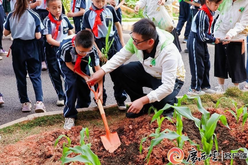 sunbet申搏官方网站农学院团员与春华路小学少先队员种植甘蔗种苗