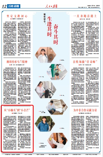 我常常被问:“志愿服务苦吗?累吗?”答案是肯定的。但为他人创造价值收获的幸福与快乐,能把过程里的艰辛与苦涩,酿成心底里最甜蜜的记忆。如今,我已从学校志愿活动的“跟随者”变成“带头人”,但“小锄头”的初心不会改变,我将继续用手中的“小锄头”努力耕耘,在志愿服务中谱写青春之歌。