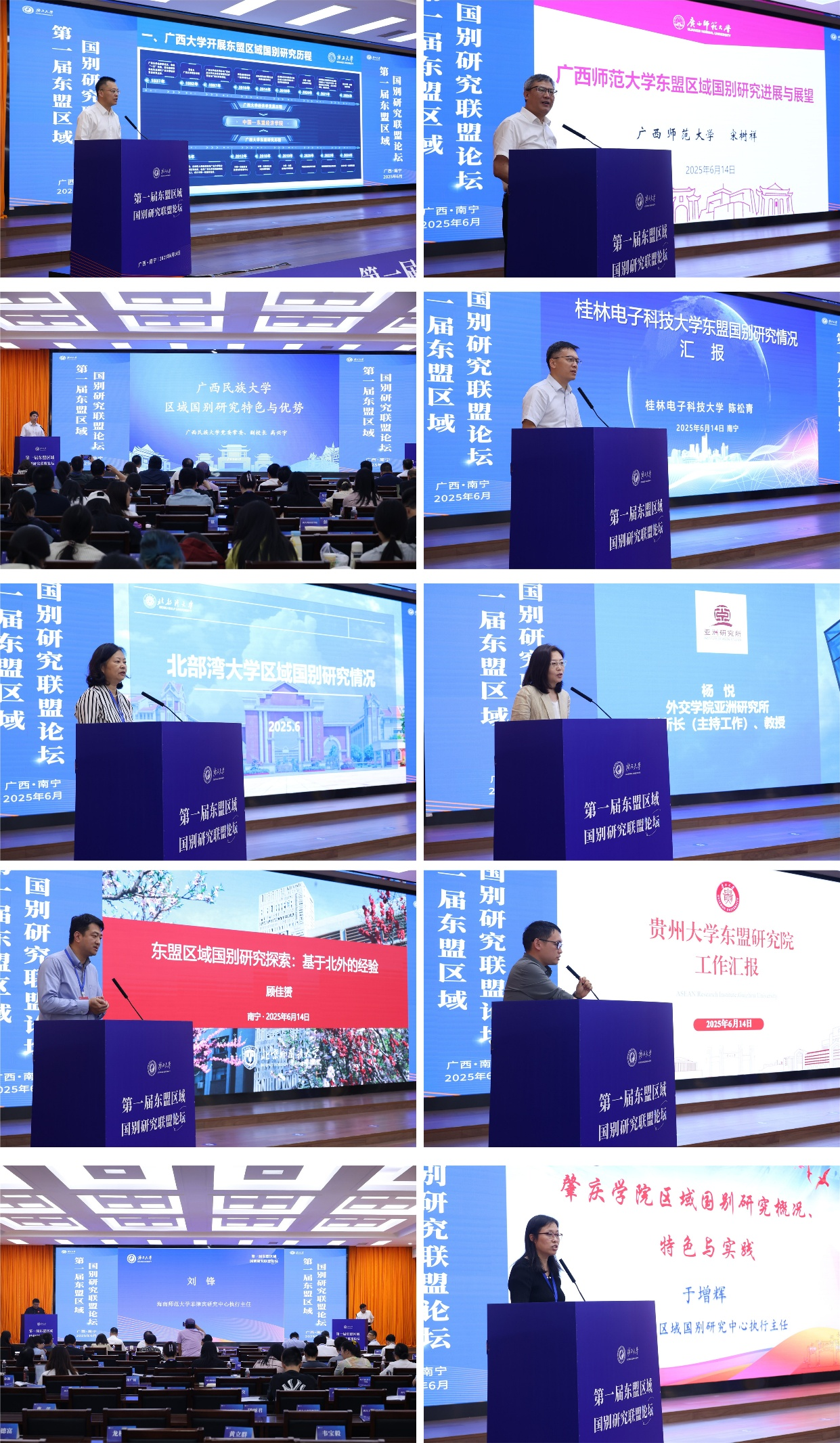 论坛中,sunbet申搏官方网站、广西师范大学、广西民族大学、桂林电子科技大学和北部湾大学等高校领导,外交学院、北京外国语大学、贵州大学、海南师范大学、肇庆学院等东盟区域国别研究机构负责人分别介绍本单位东盟区域国别研究的经验做法,为与会者提供丰富的实践参考和合作契机;同时,主办方还举行了三场分论坛,主题包括东盟区域国别研究经验特色、东盟十国国别研究专题探索、中国—东盟合作与发展研究。