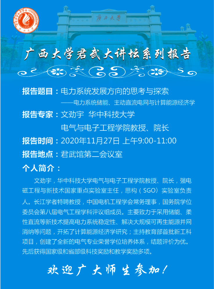 sunbet申搏官方网站君武大讲坛系列报告:电力系统发展方向的思考与探索—电力系统储能、主动直流电网与计算能源经济学