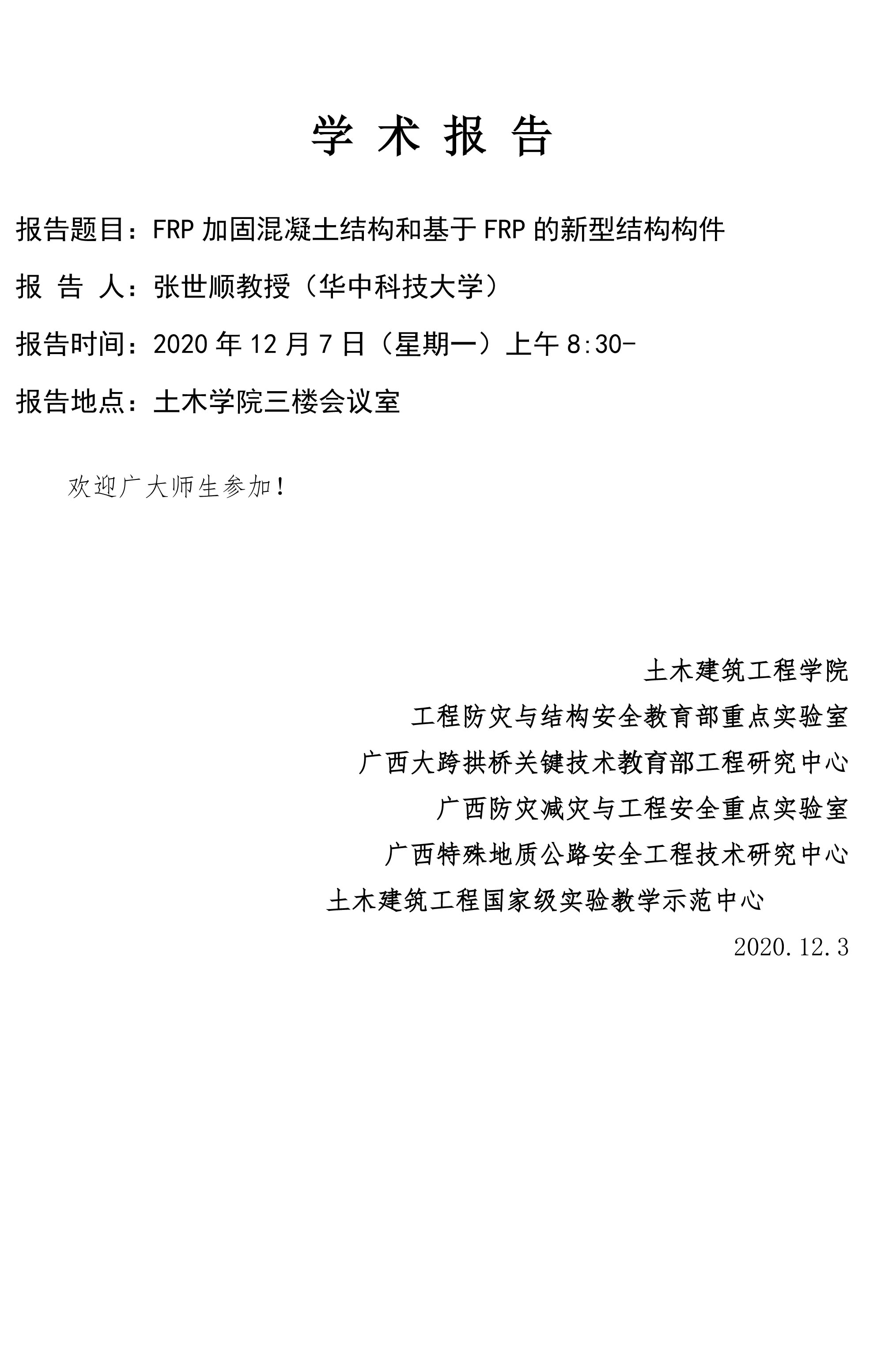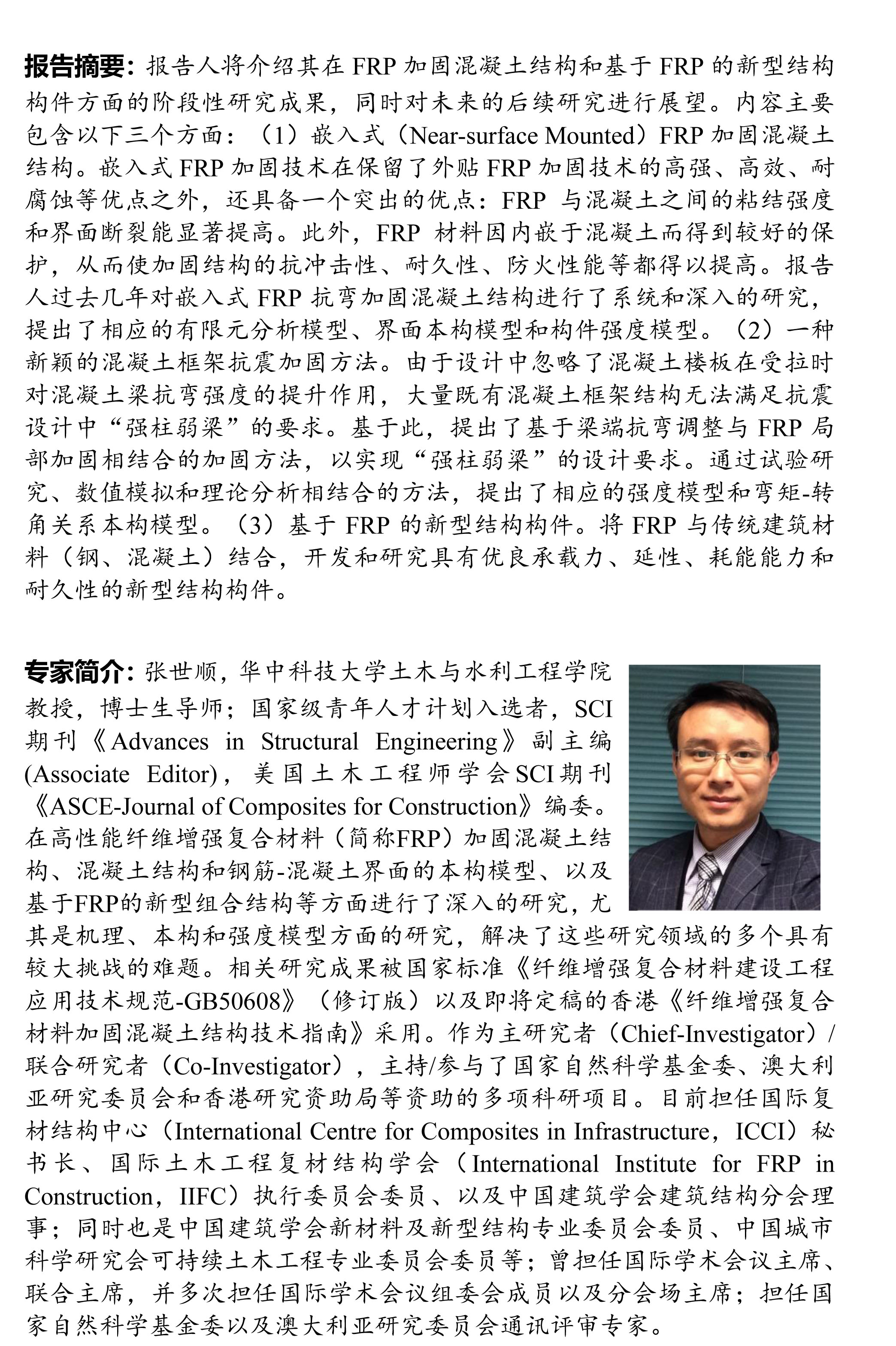 土木建筑工程学院学术报告:FRP加固混凝土结构和基于FRP的新型结构构件