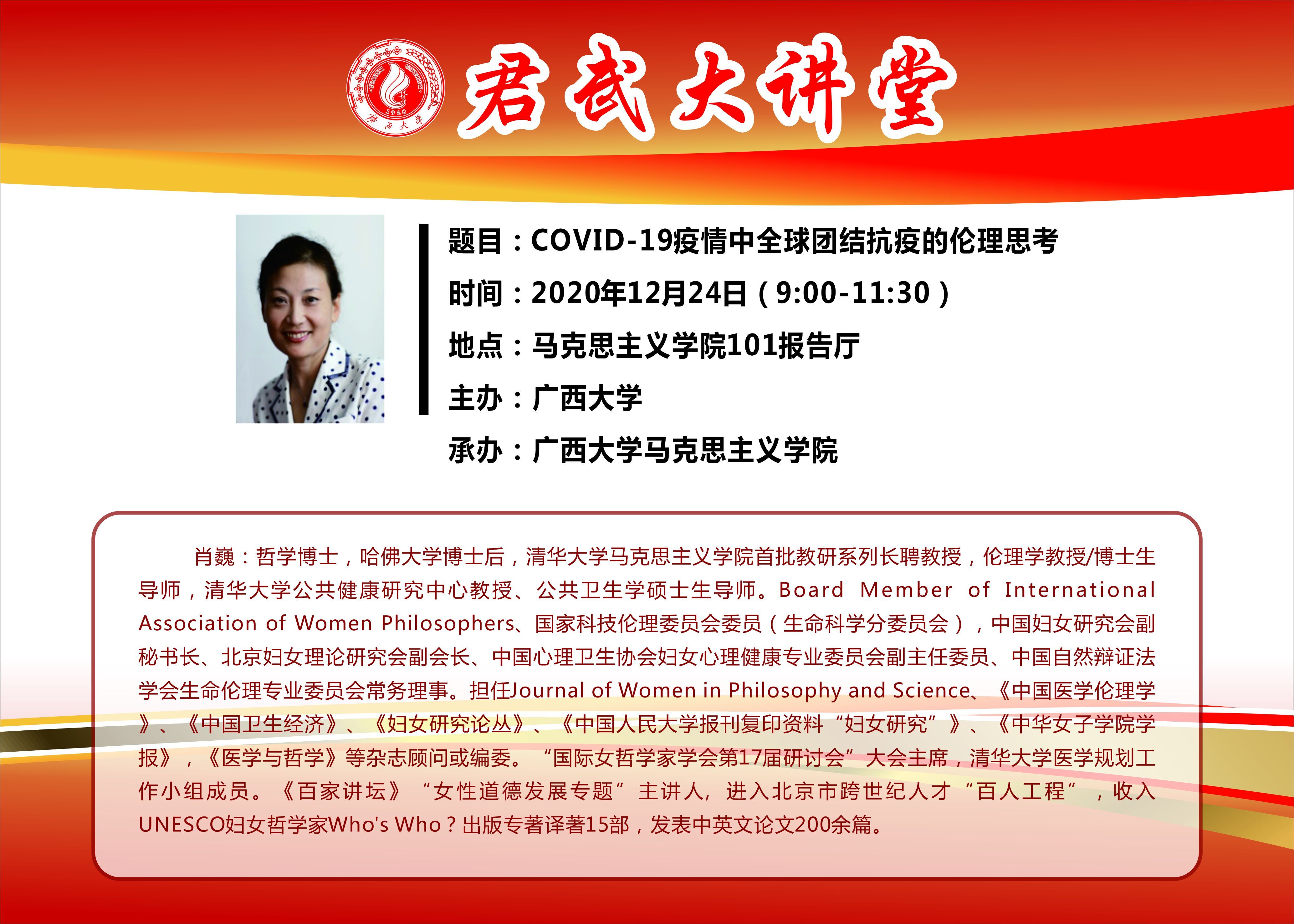 君武大讲堂:COVID-19疫情中全球团结抗疫的伦理思考