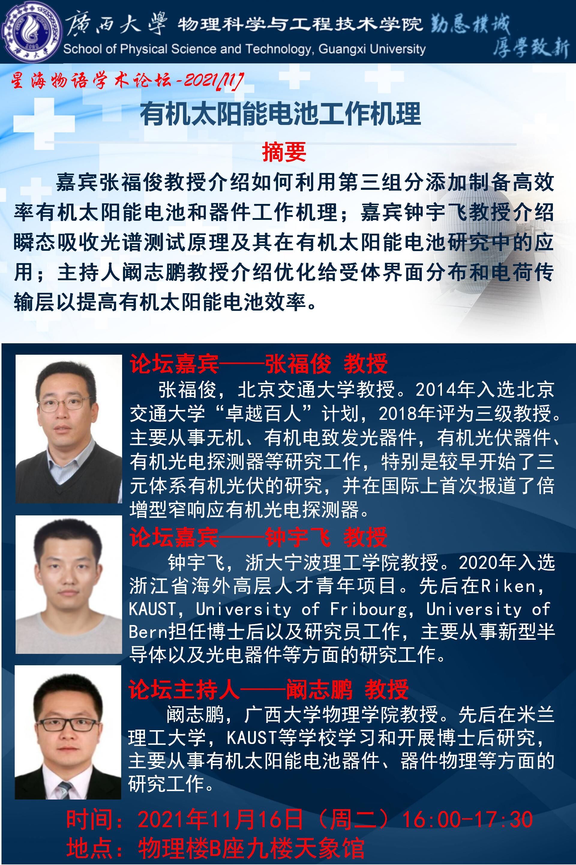 物理学院星海物语学术论坛(第十一期):有机太阳能电池工作机理
