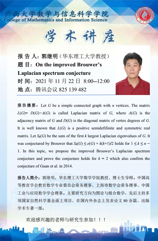 数信学院学术报告: On the improved Brouwer's Laplacian spectrum conjecture