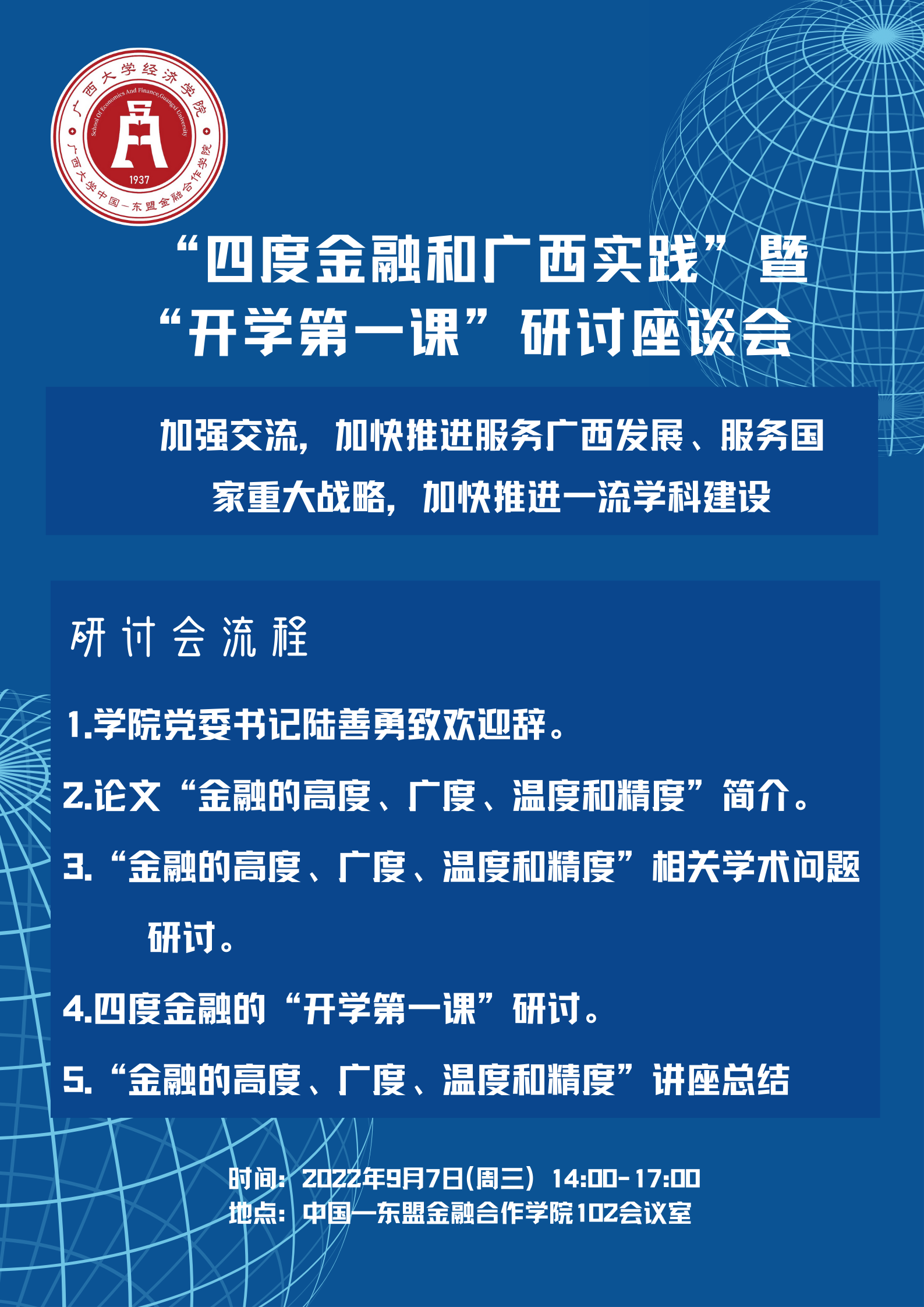 “四度金融和广西实践”研讨座谈会暨“面向东盟的金融开放门户和中国—东盟金融合作学院建设”研讨座谈会