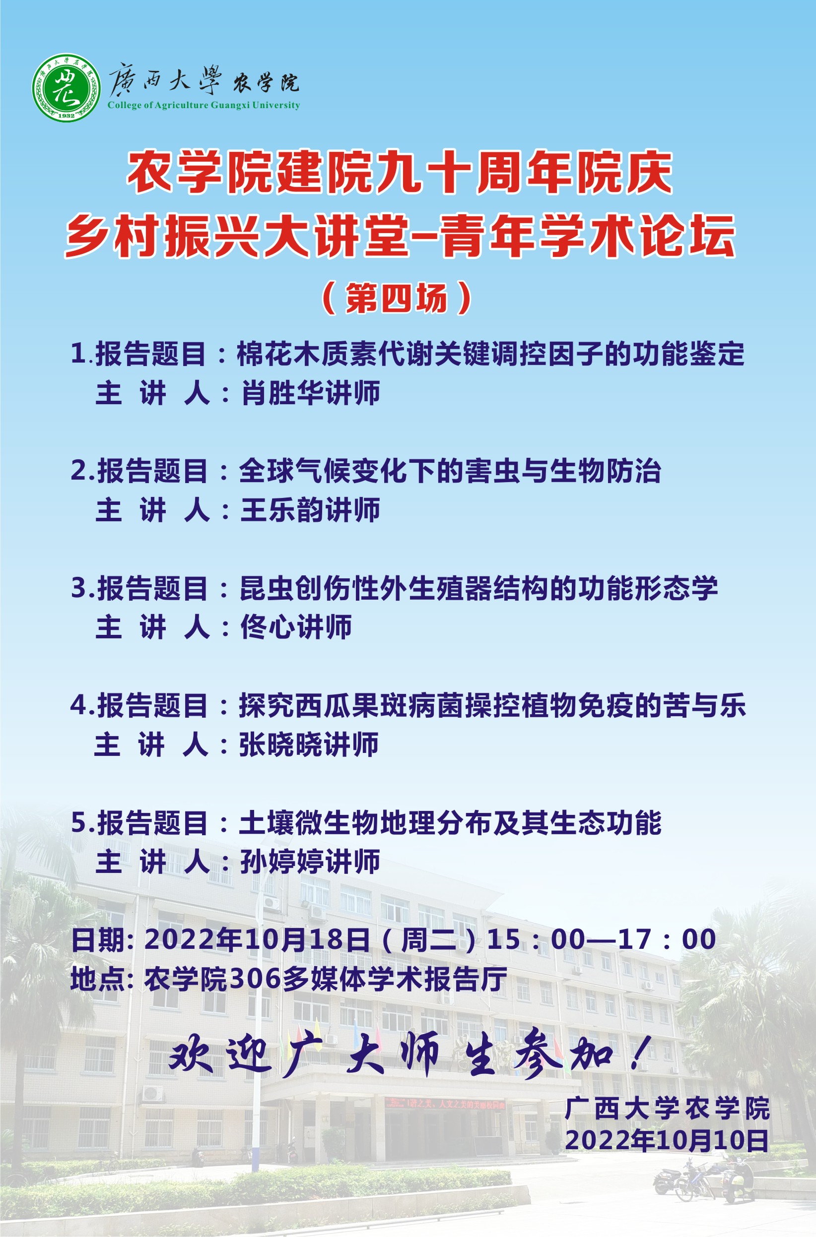 农学院建院九十周年院庆活动乡村振兴大讲堂-青年学术论坛