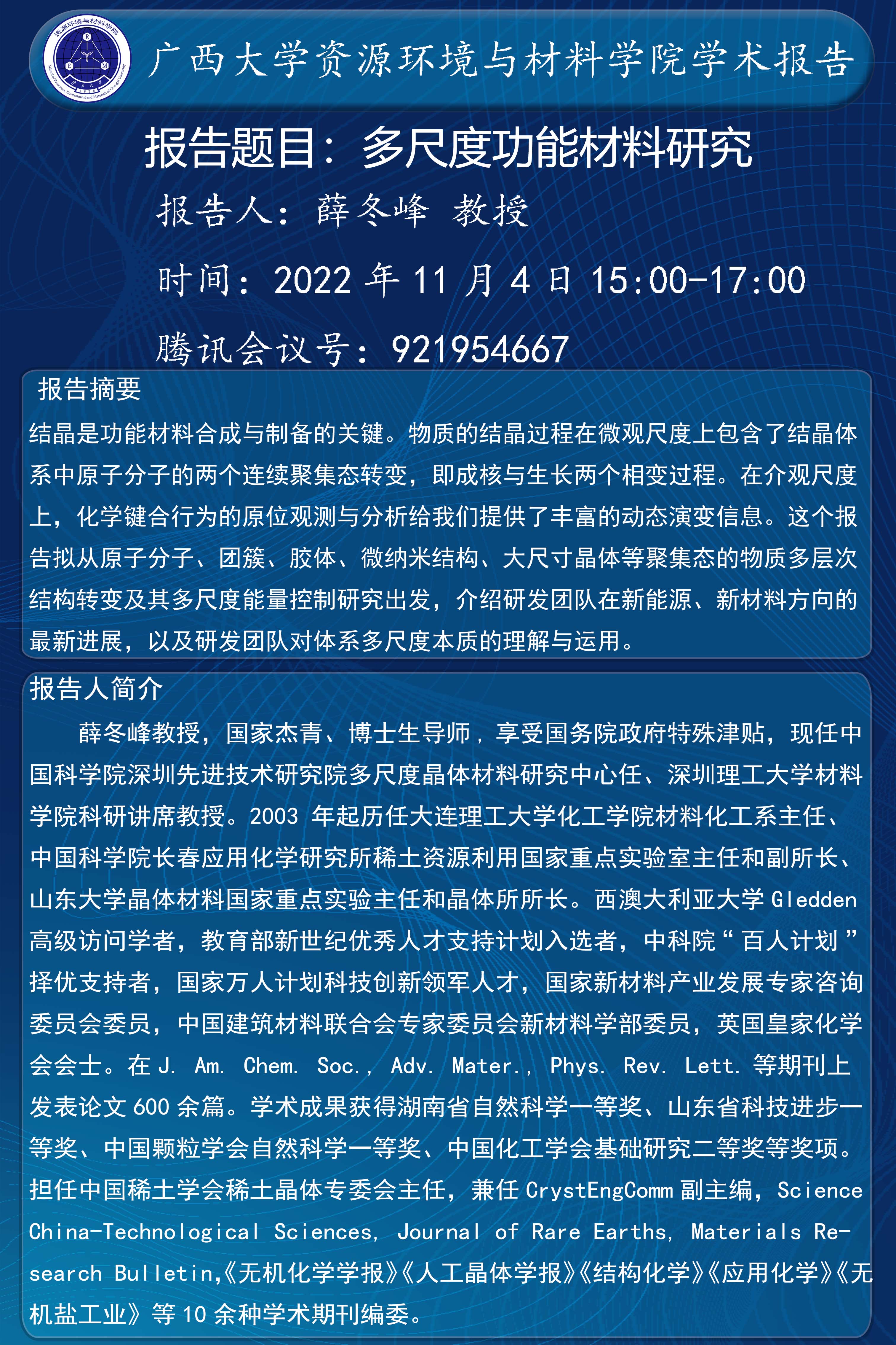资源环境与材料学院学术报告:多尺度功能材料研究