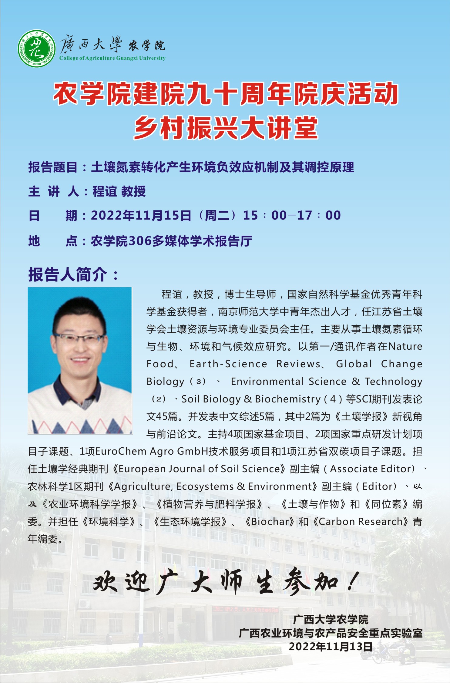 农学院建院九十周年院庆活动 乡村振兴大讲堂