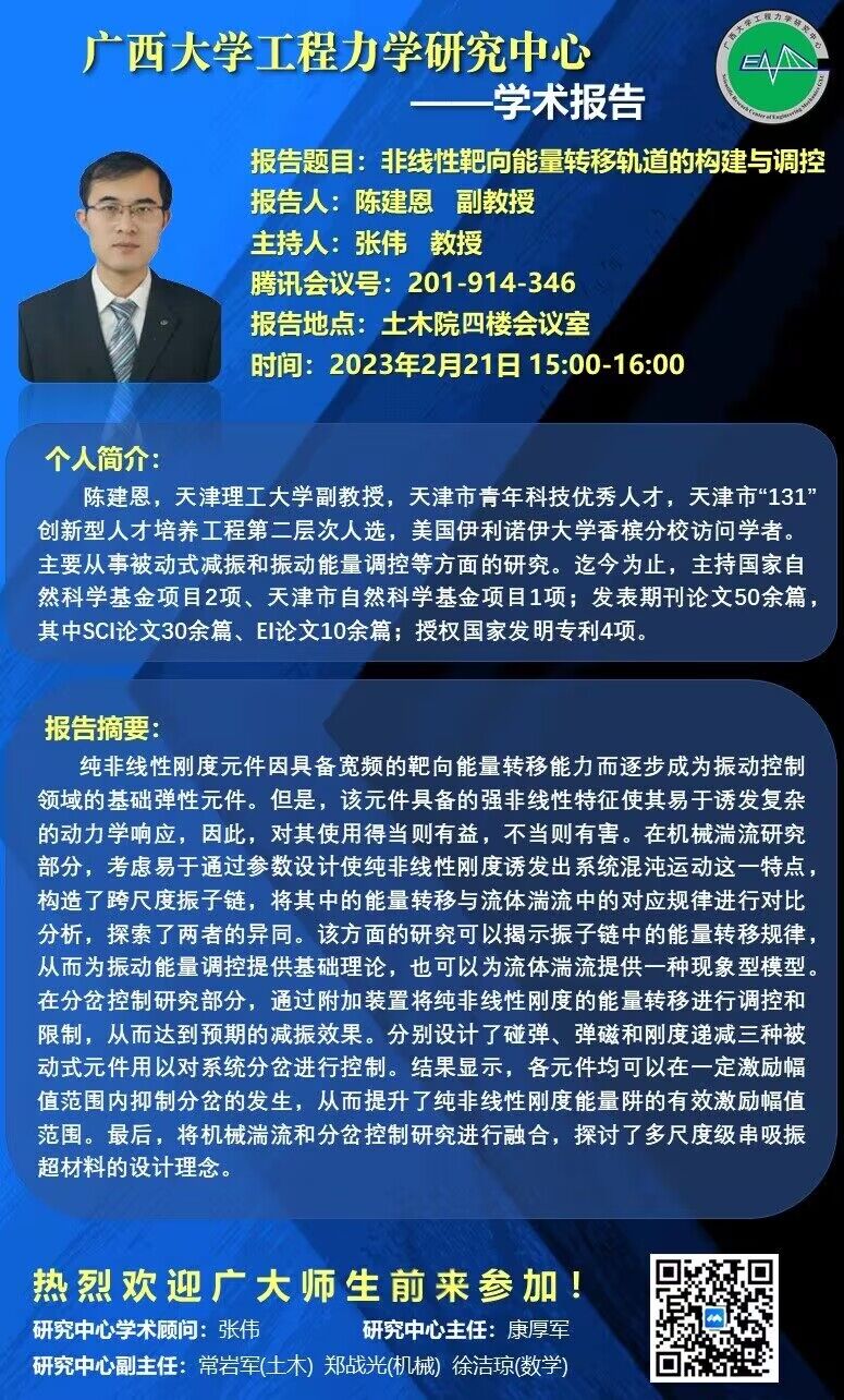 sunbet申搏官方网站工程力学研究中心学术报告:非线性靶向能量转移轨道的构建与调控