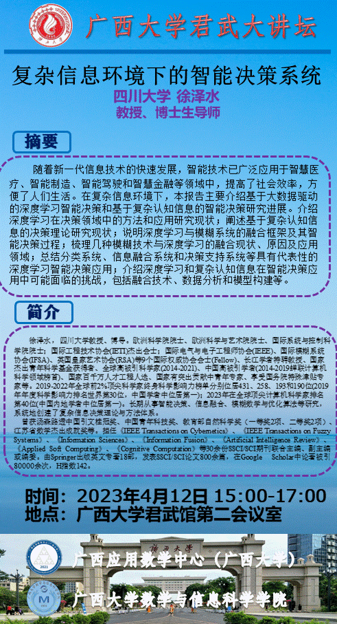 sunbet申搏官方网站君武大讲堂:复杂信息环境下的智能决策系统