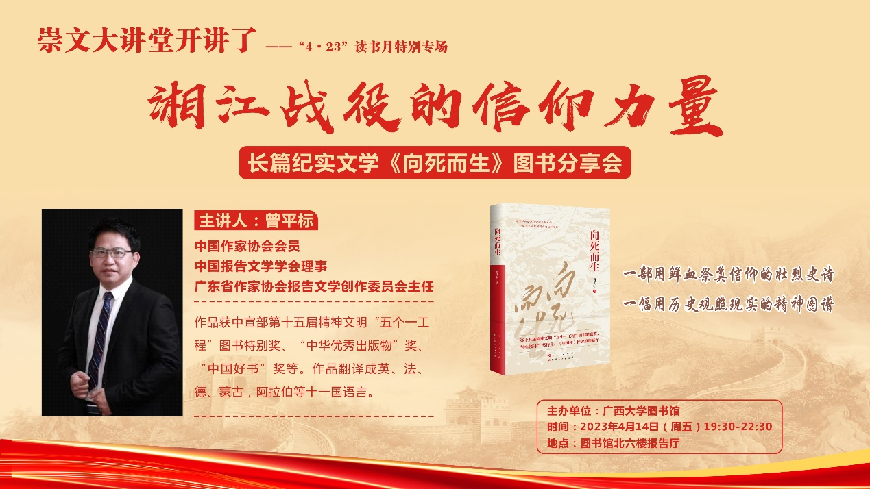 崇文大讲堂:湘江战役的信仰力量 一一长篇纪实文学《向死而生》图书分享会