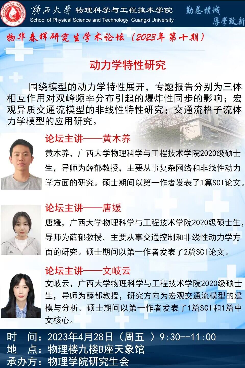 物理学院2023年物华春晖学术论坛(第十期):动力学特性研究