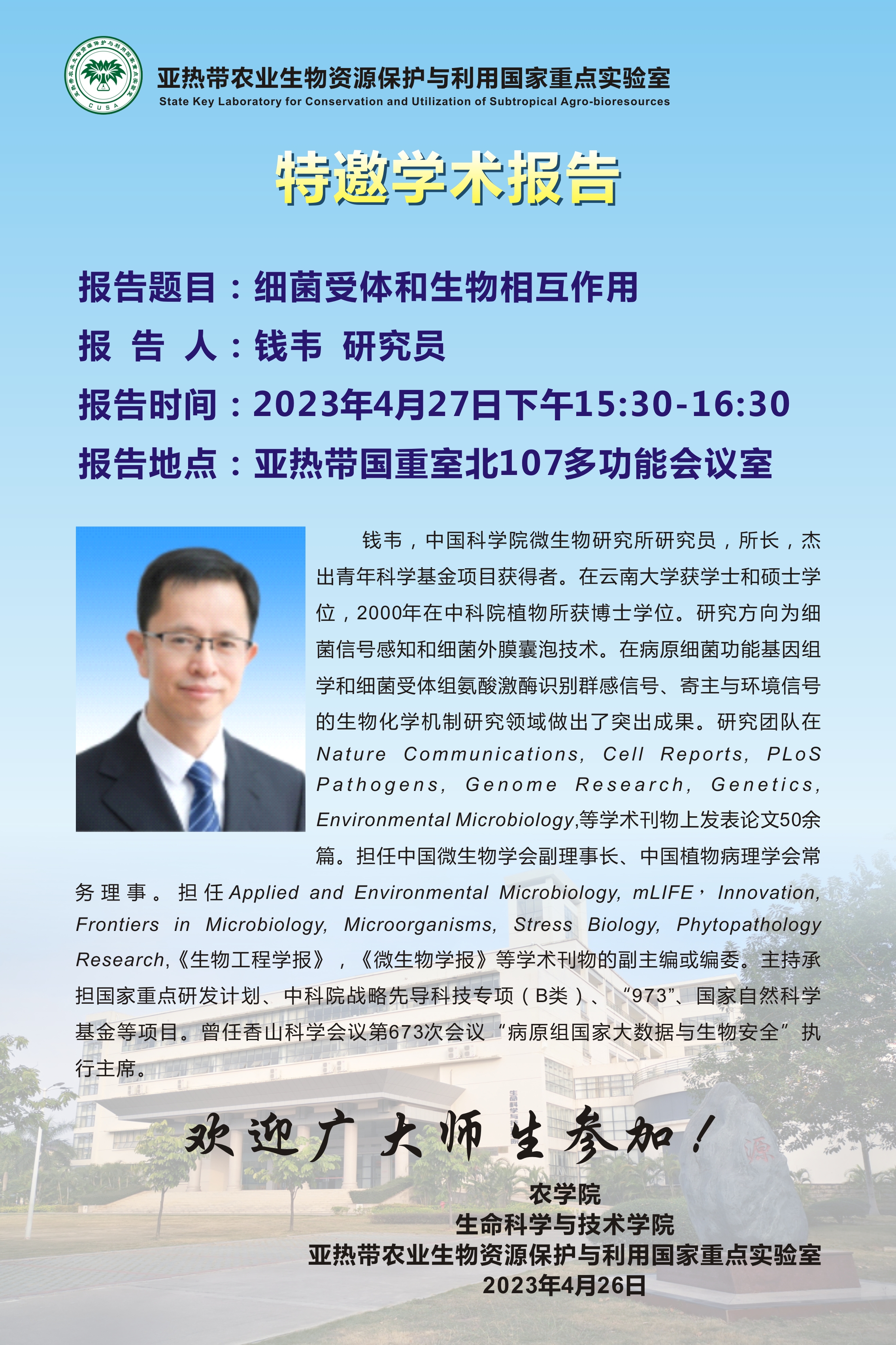 亚热带国重特邀学术报告:细菌受体和生物相互作用