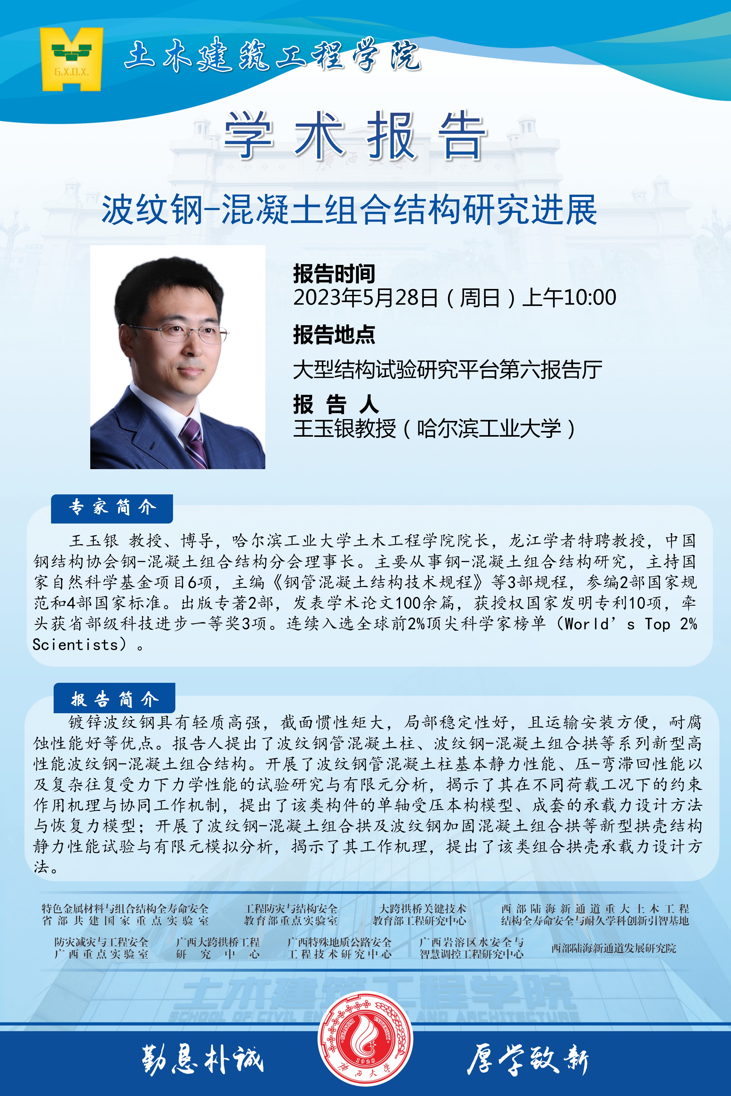 土木建筑工程学院学术报告:波纹钢-混凝土组合结构研究进展