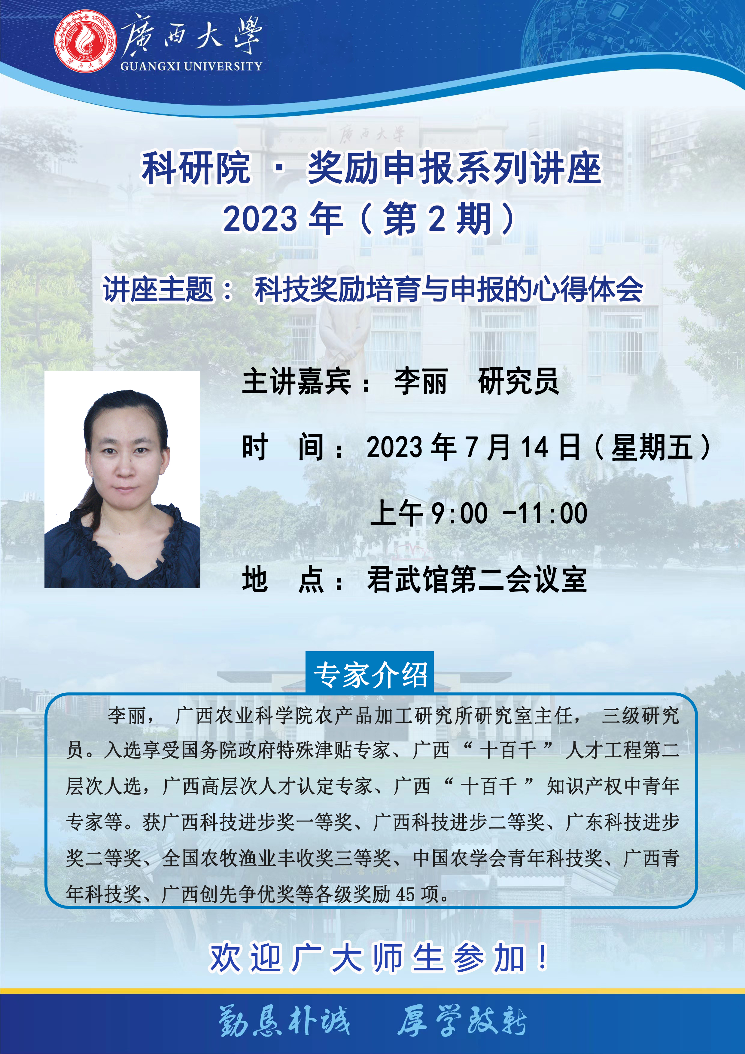 科研院·奖励申报系列讲座2023 年(第2期):科技奖励培育与申报的心得体会