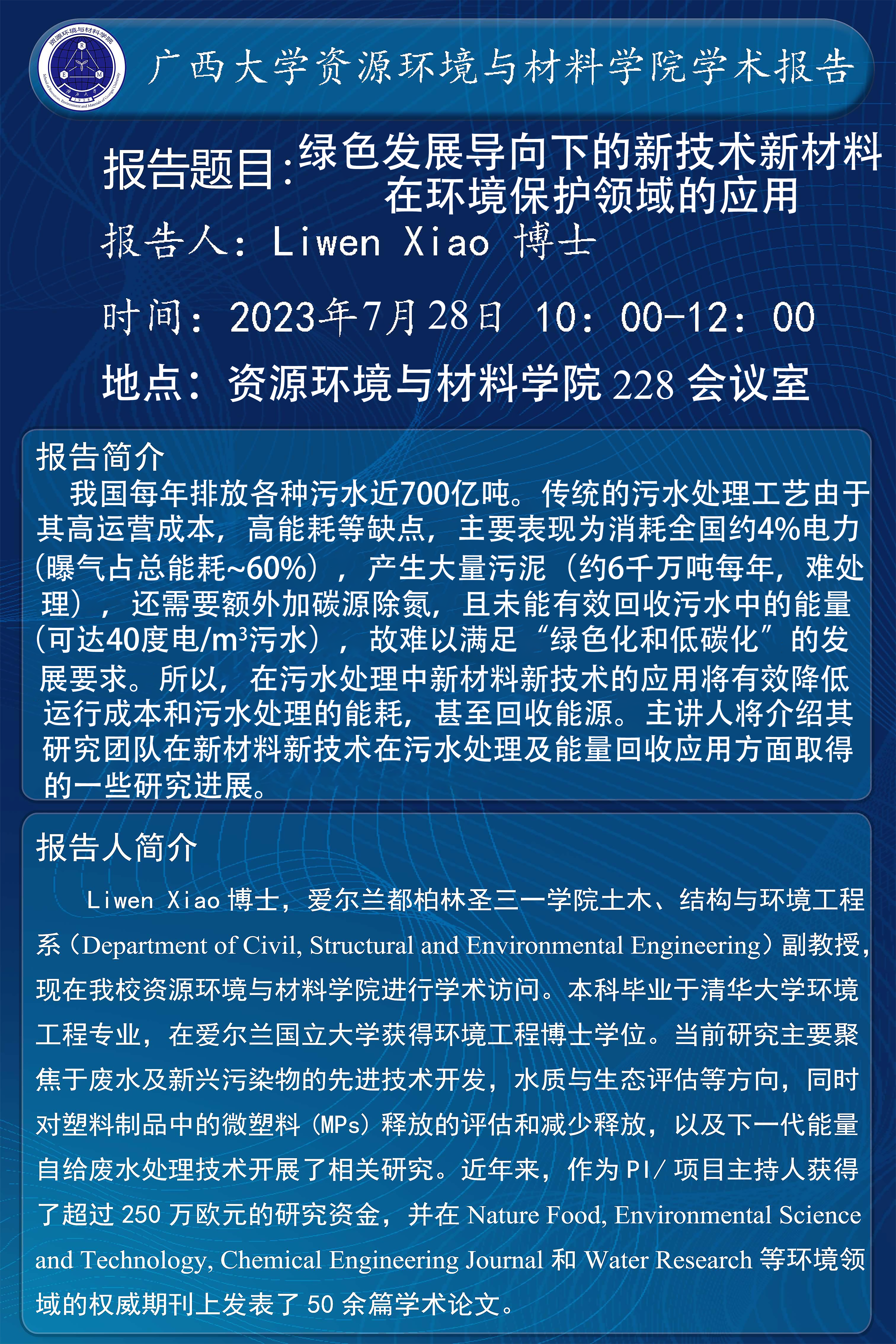 资源环境与材料学院学术报告:绿色发展导向下的新技术新材料在环境保护领域的应用