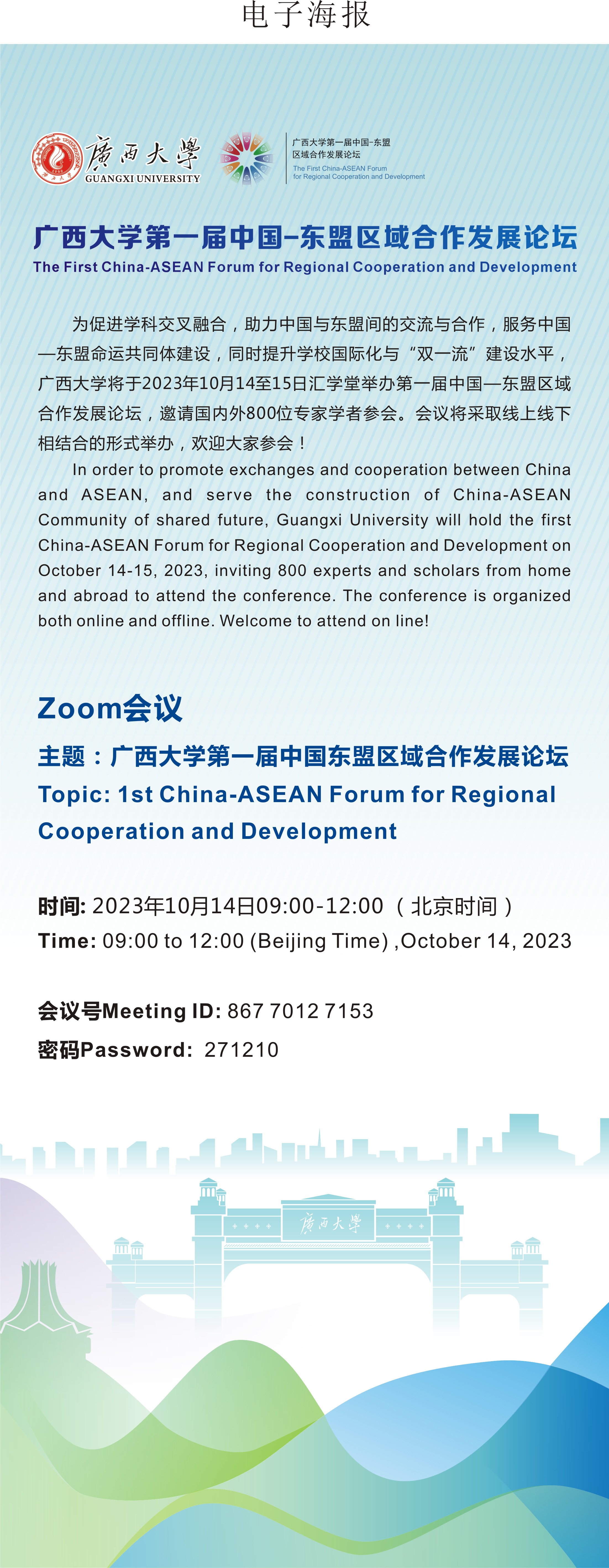 Zoom会议(线上线下结合):sunbet申搏官方网站第一届中国东盟区域合作发展论坛