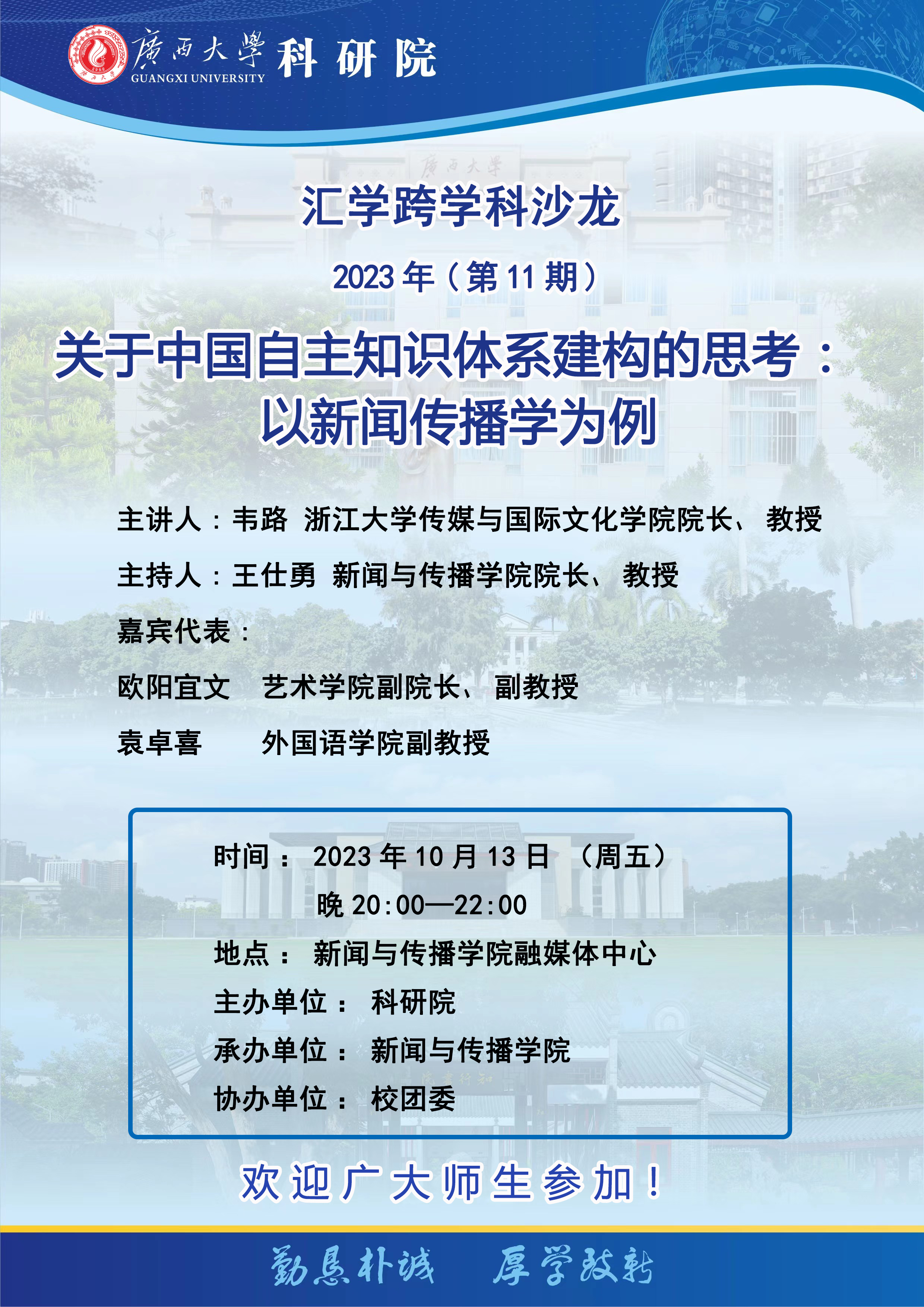 汇学跨学科沙龙(第11期):关于中国自主知识体系建构的思考----以新闻传播学为例的通知