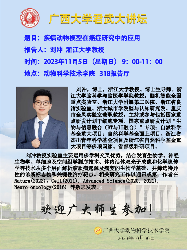 动物科学技术学院君武大讲坛:疾病动物模型在癌症研究中的应用