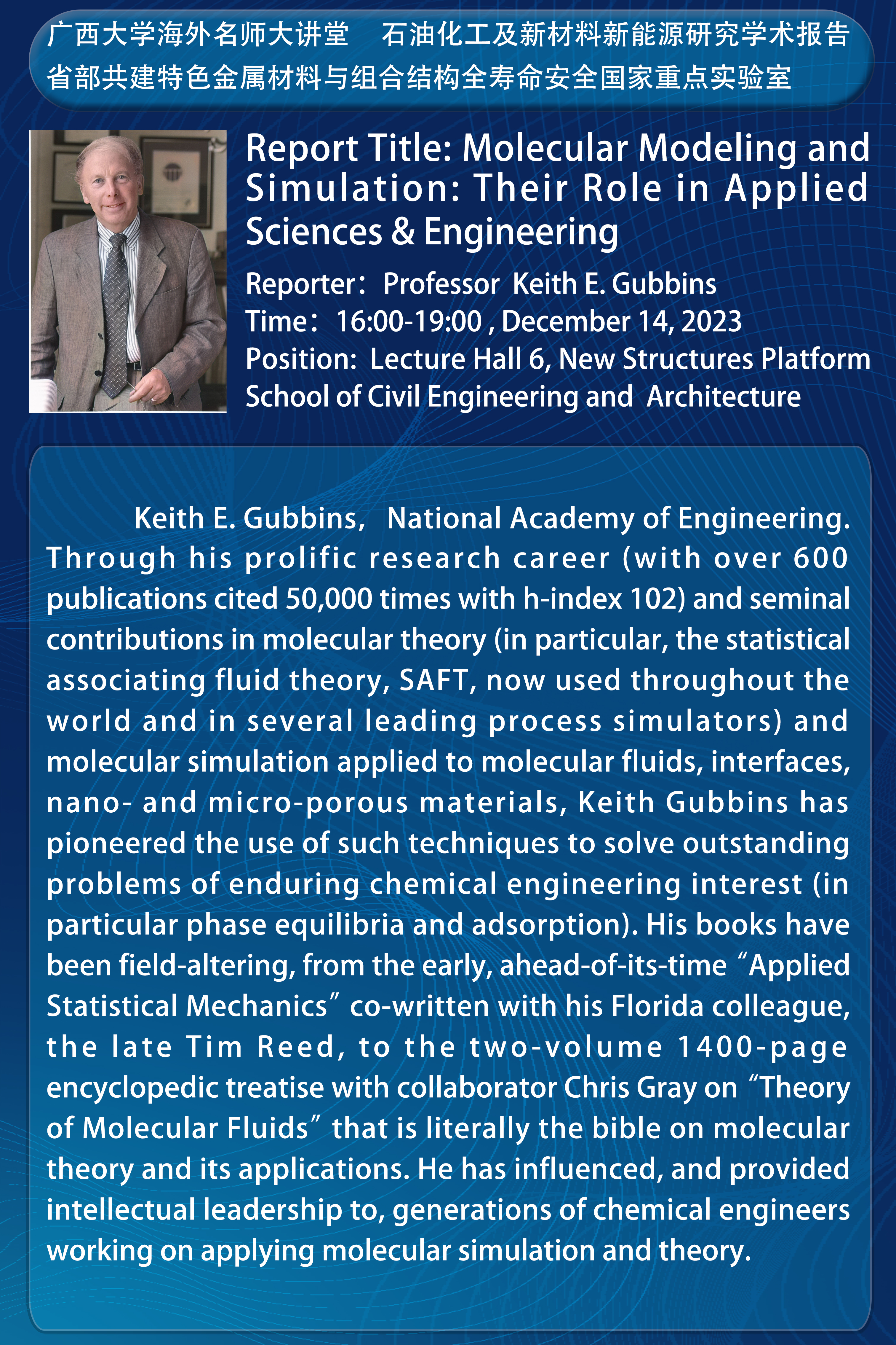 化学化工学院海外名师大讲堂:Molecular Modeling and Simulation: Their Role in Applied Sciences& Engineering