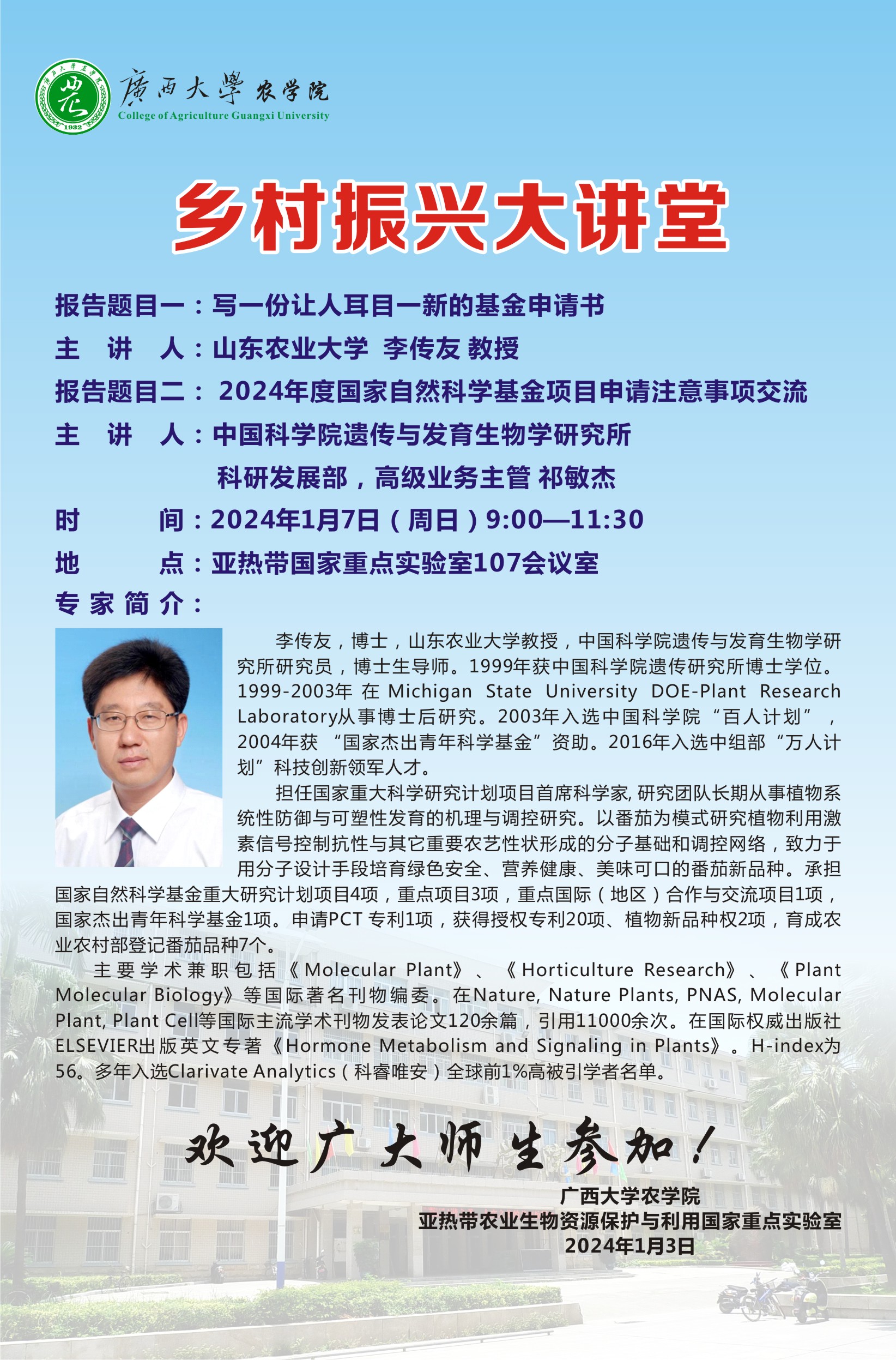 农学院乡村振兴大讲堂:写一份让人耳目一新的基金申请书