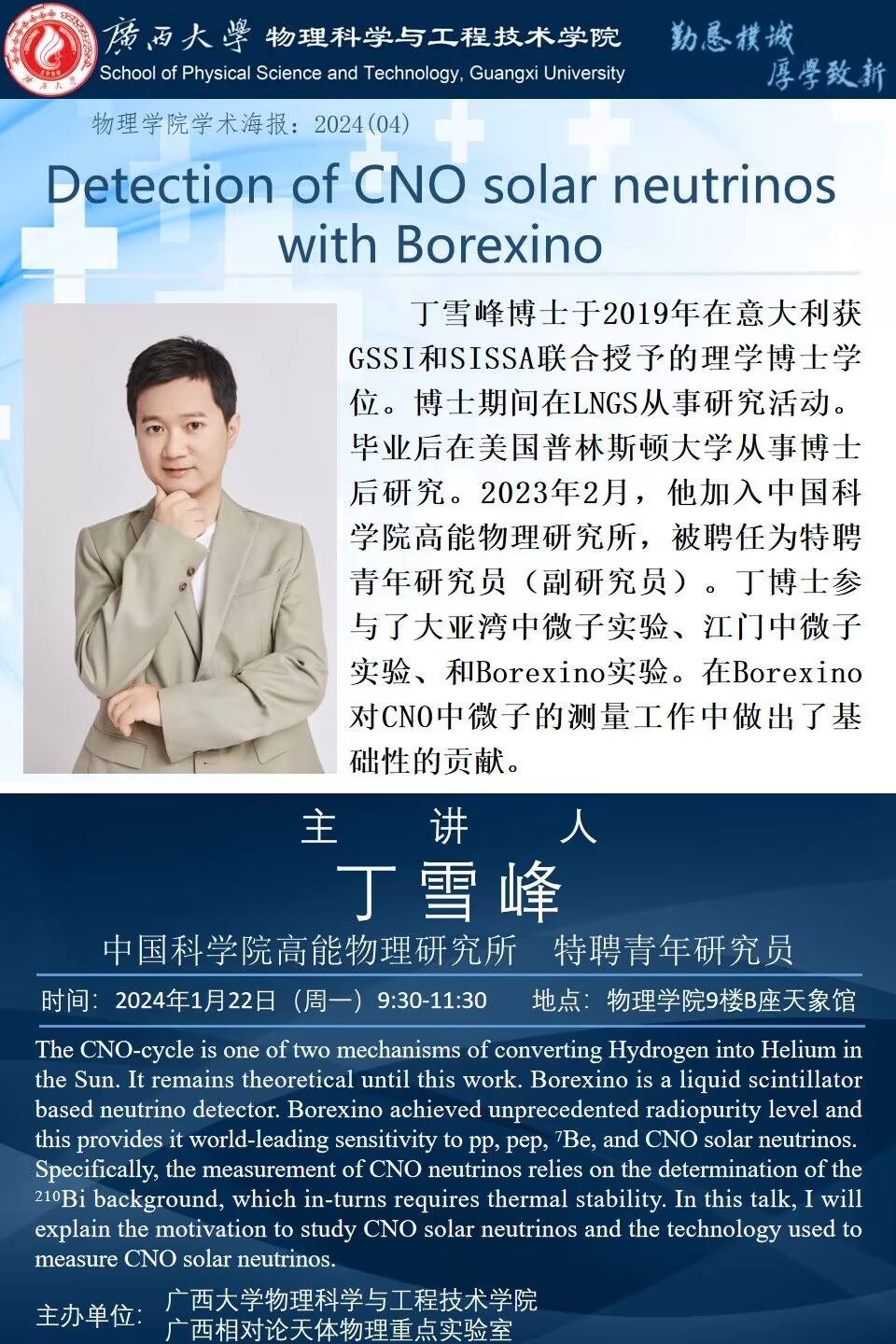 物理学院2024年学术报告之04:Detection of CNO solar neutrinos with Borexino