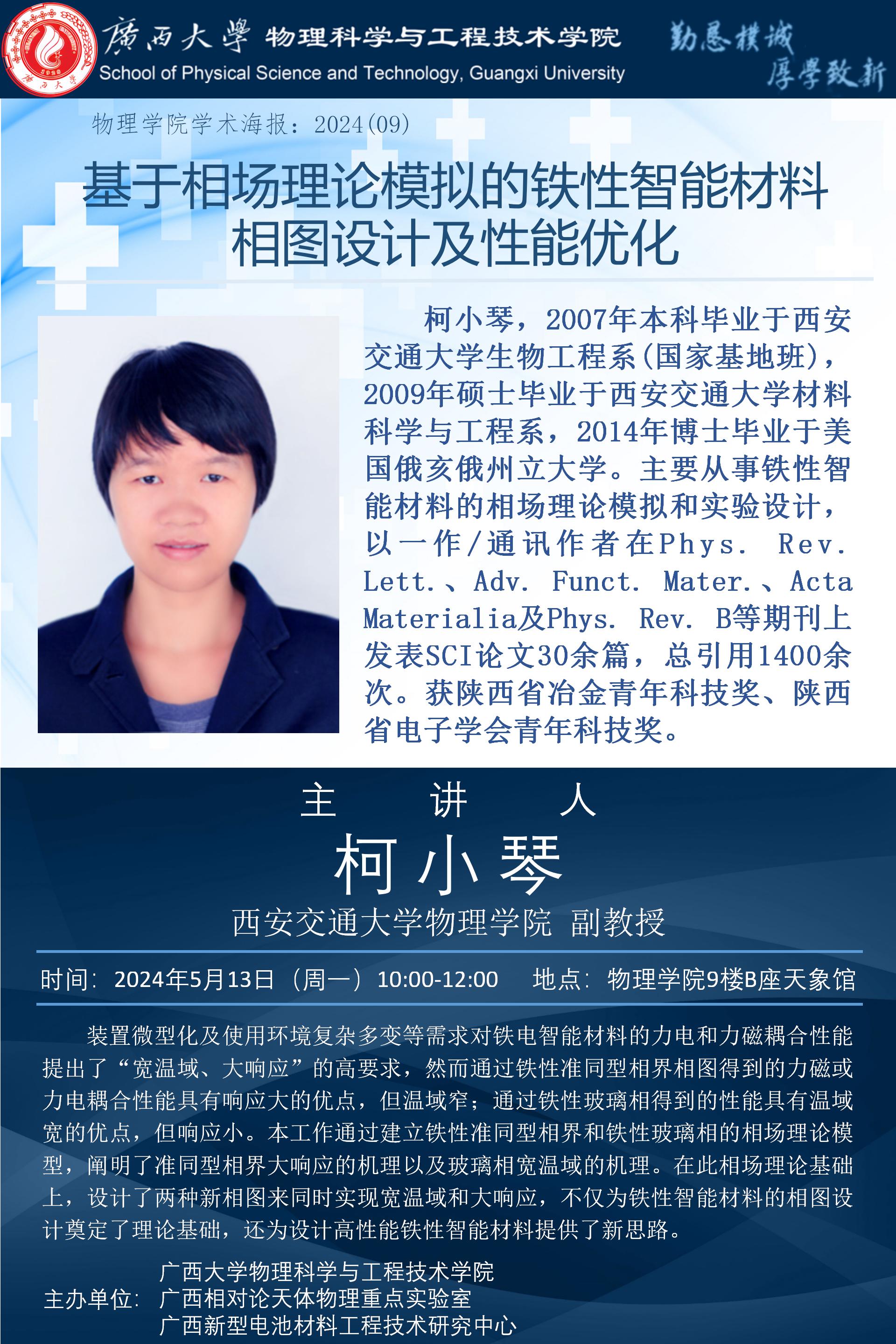 物理学院2024年学术报告之09:基于相场理论模拟的铁性智能材料相图设计及性能优化