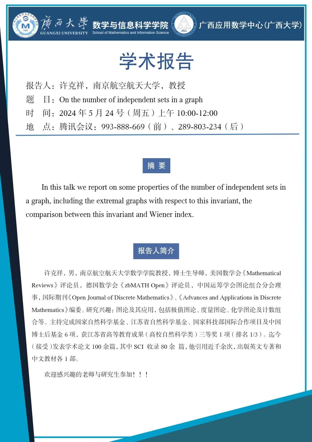 学术活动日期 2024年5月24日(周五) 时间 10:00-12:00