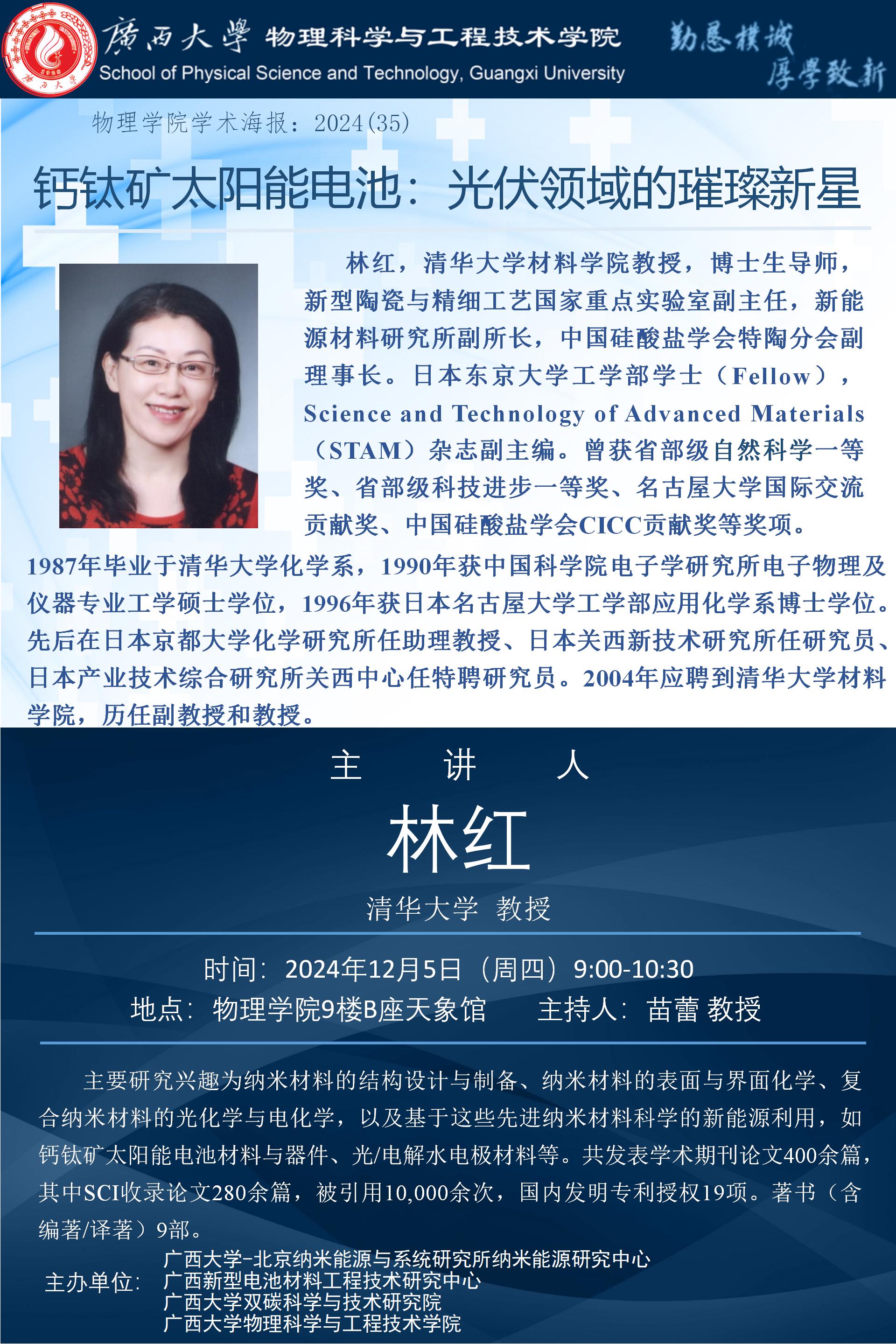 物理学院学术报告:钙钛矿太阳能电池——光伏领域的璀璨新星