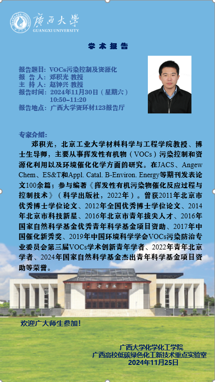 化学化工学院学术报告:VOCs污染控制及资源化