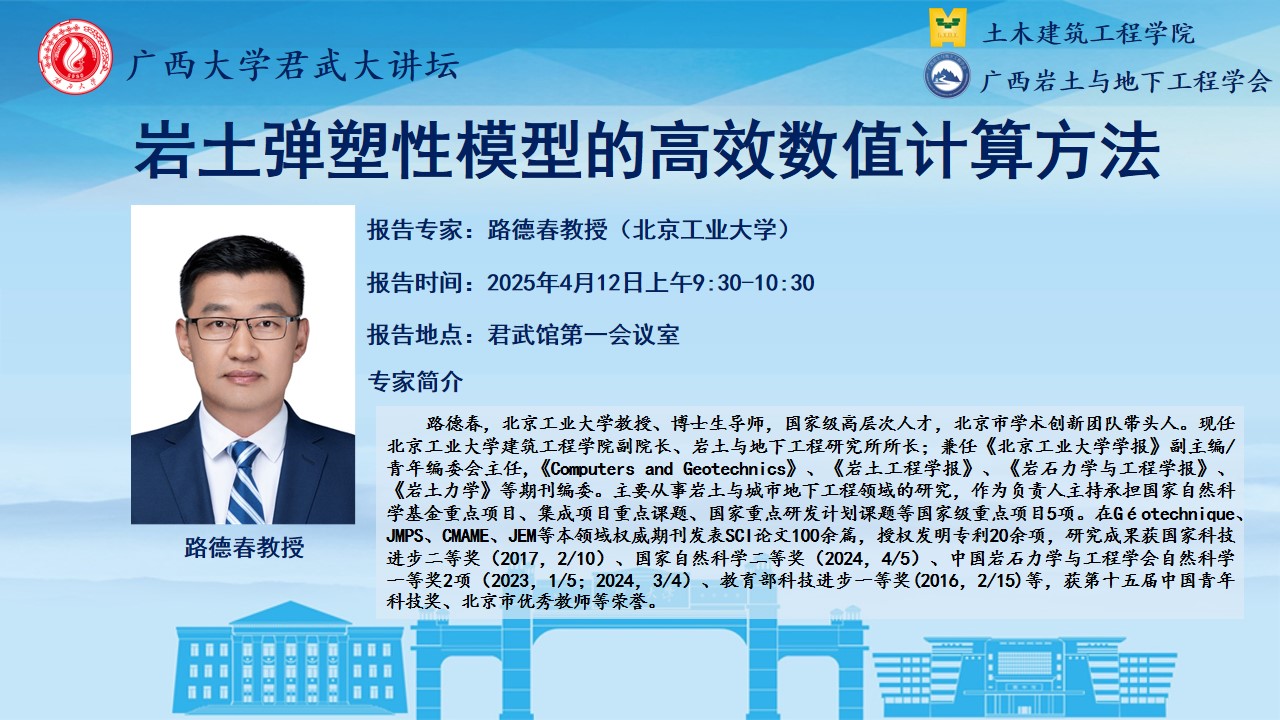君武大讲坛、土木建筑工程学院学术报告:岩土弹塑性模型的高效数值计算方法