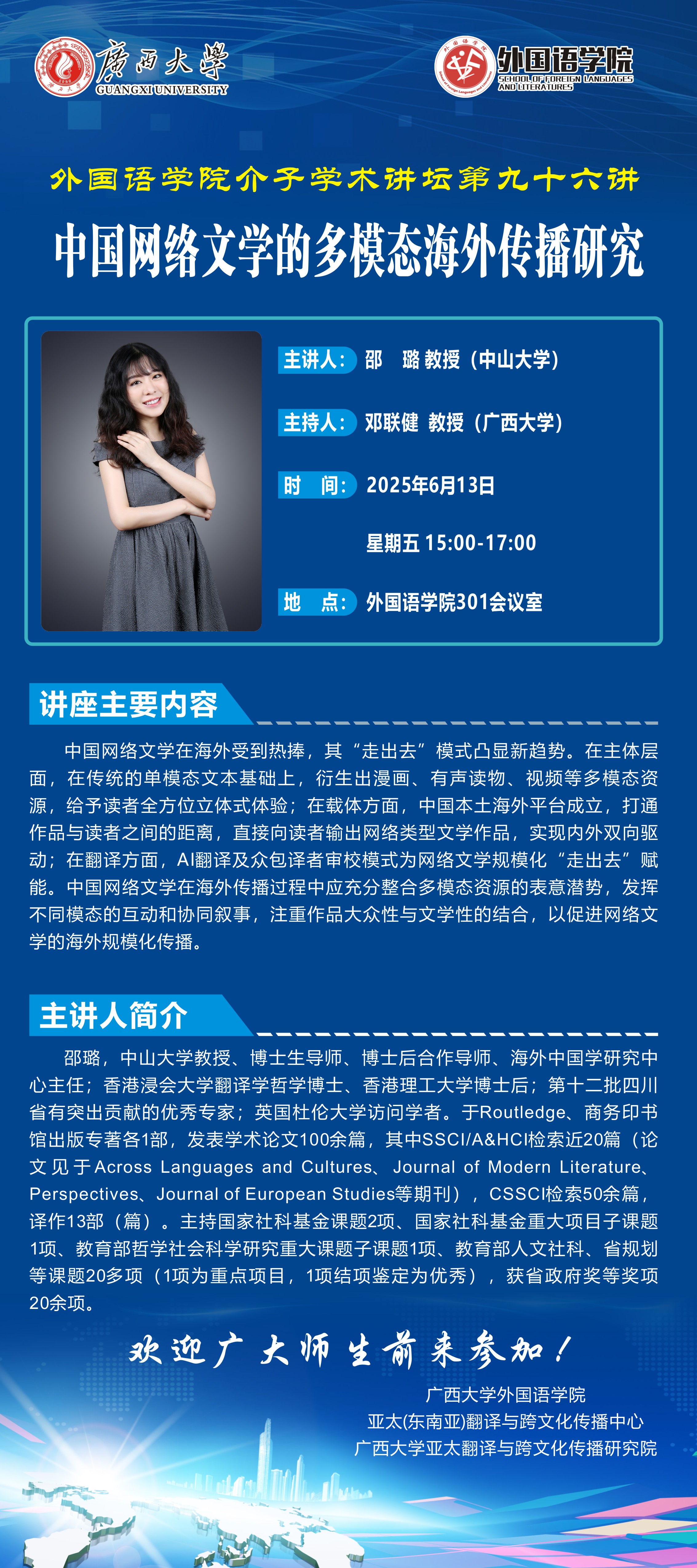外国语学院学术报告:中国网络文学的多模态海外传播研究