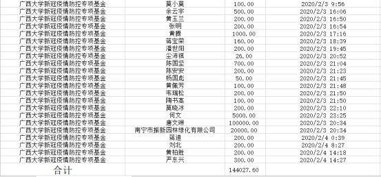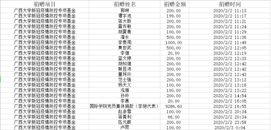自sunbet申搏官方网站校友总会与教育发展基金会发布捐赠公告以来,截至2020年2月4日晚上7点整,基金会共接受捐赠45笔,具体明细如下: