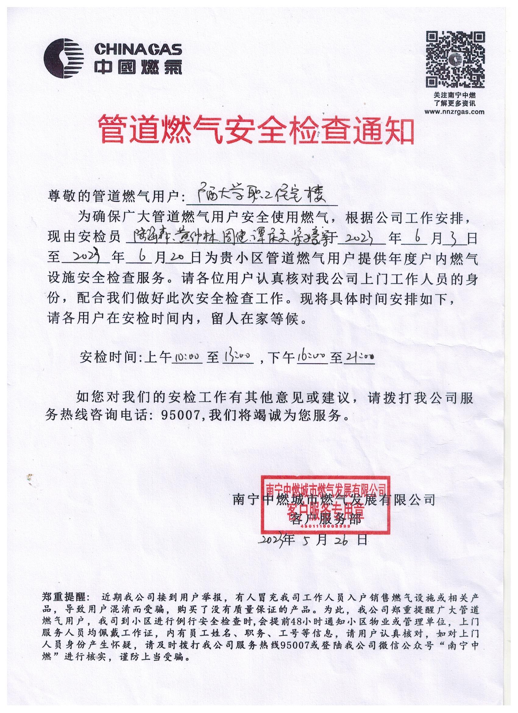 管道燃气安全检查通知