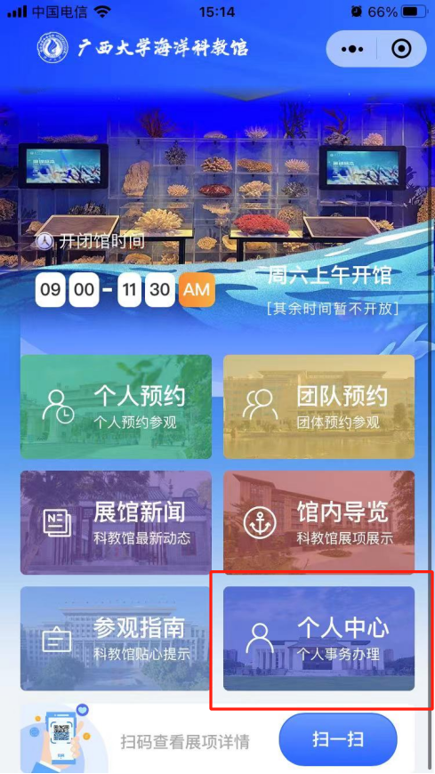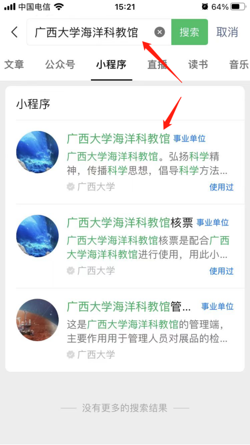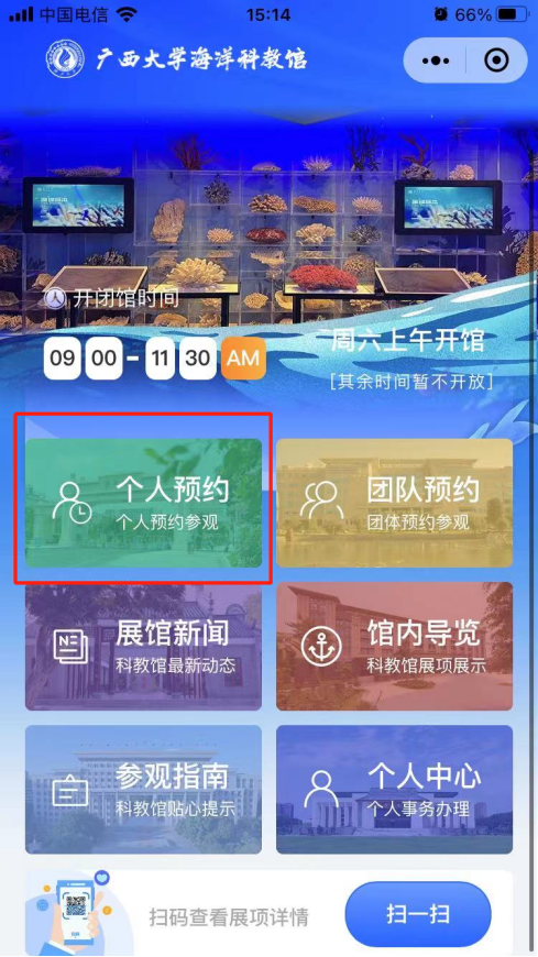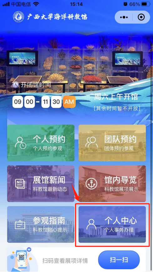1. 微信搜索“sunbet申搏官方网站海洋科教馆”小程序,点击进入或扫二维码。