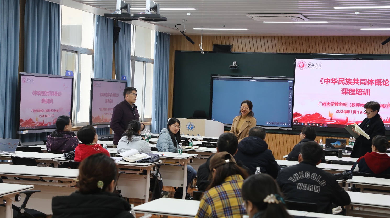 培训结束后,《中华民族共同体概论》教研室主任、马克思主义学院副院长陆秀红组织教研室成员进行了交流与讨论。大家表示,通过本次培训,对中华民族共同体的概念内涵、理论渊源和时代价值有了更深刻更全面的了解,将充分利用寒假时间,认真阅读教材,学习相关教学资料,紧紧围绕贯彻落实习近平总书记关于加强和改进民族工作的重要思想,认真备课,为上好《中华民族共同体概论》课程做好准备。